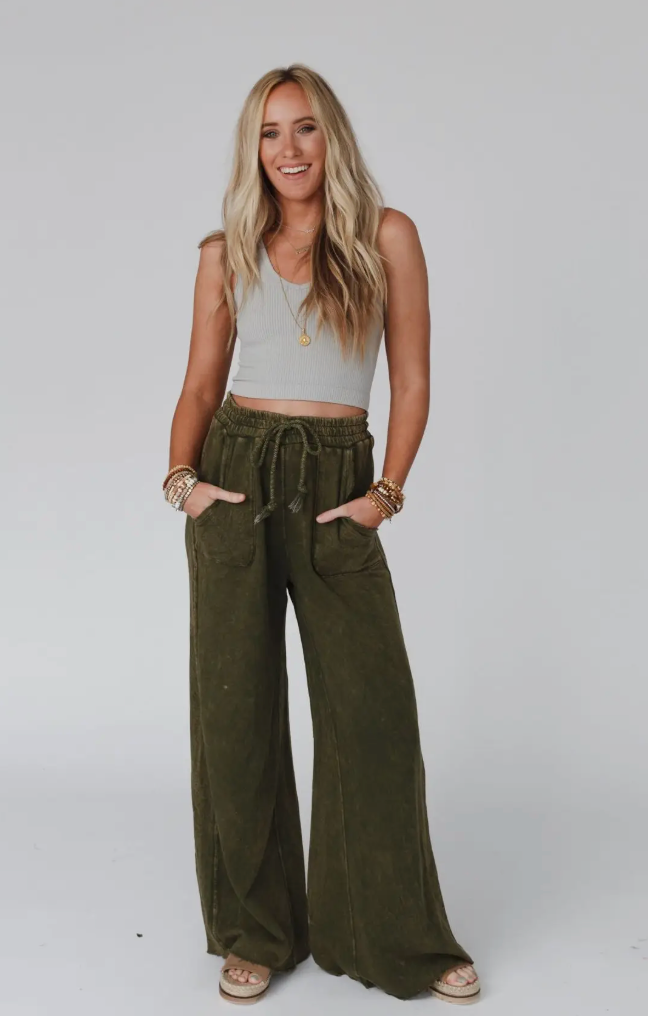 Relaxing Wide Leg Robin Pants in Olive