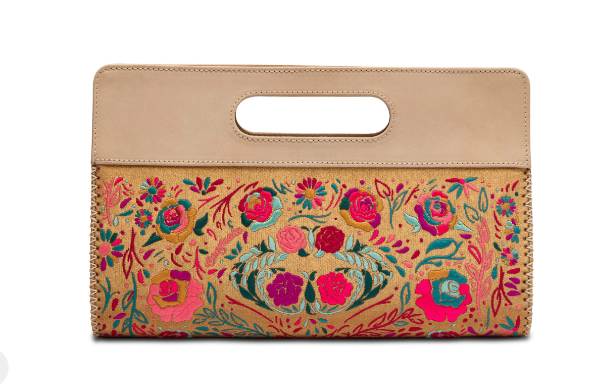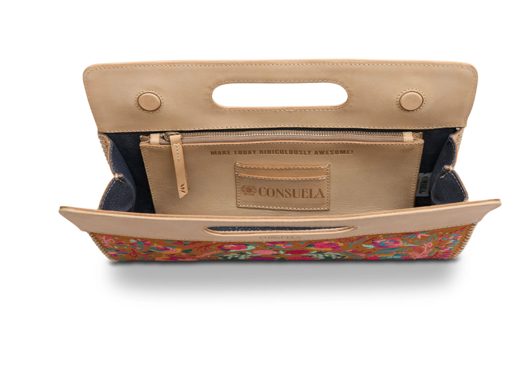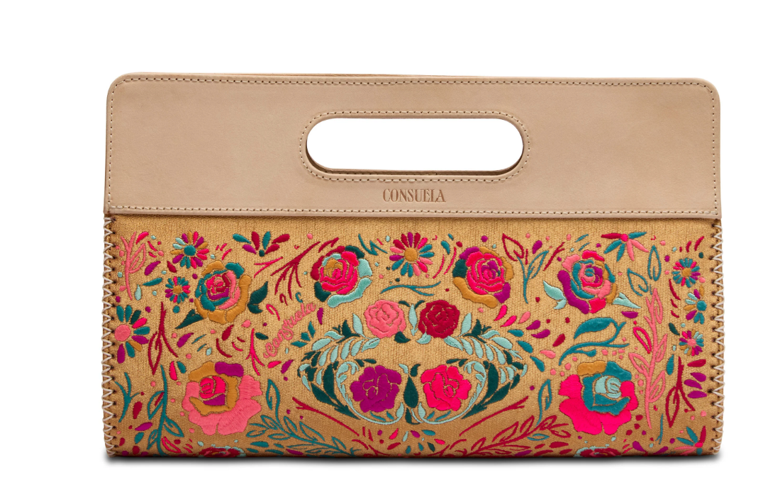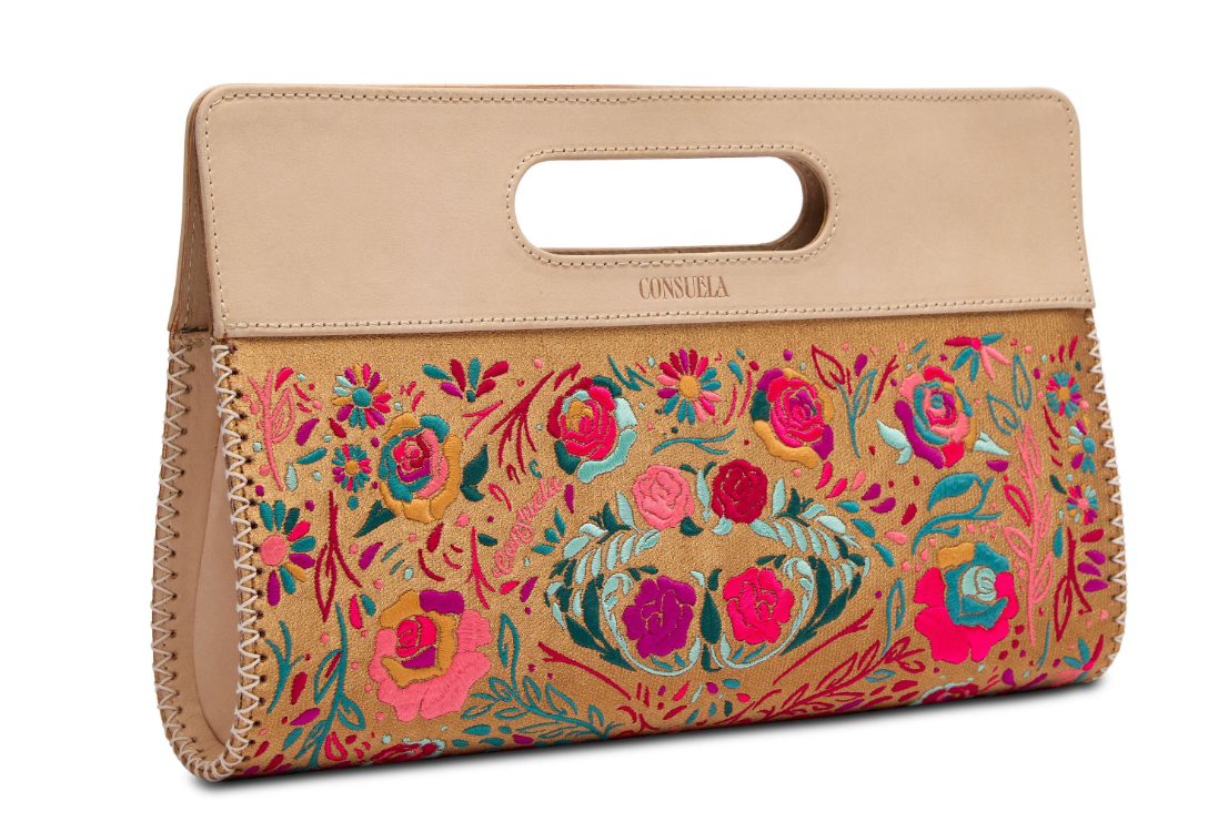 Supercharge your day with our newest clutch! This Diego leather-trimmed, hand-held clutch has plenty of storage for a bold and chic style.