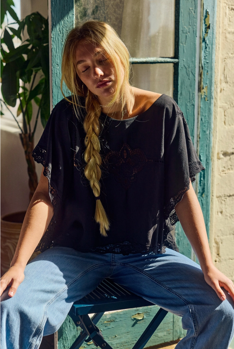 Features : - Scoop neck - Short sleeves - Embroidered detail - Comfy fit Fit : - Relax fit -